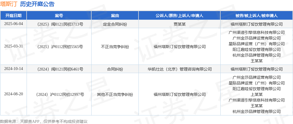 本站消息配资吧官网 配资,根据天眼查APP显示,近日公布了一则福州塔斯汀餐饮管理有限公司作为被告/被上诉人的开庭公告配资吧官网 配资,详细内容如下: